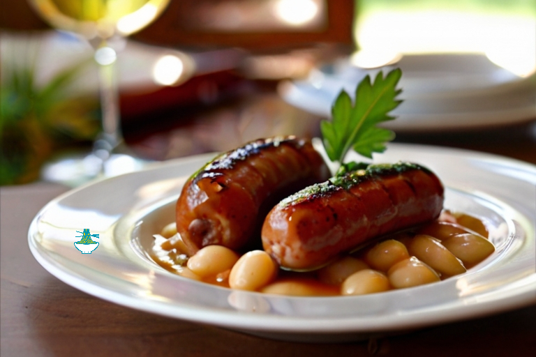 10- To serve, spoon the white beans onto serving plates or bowls. Place a grilled sausage on top of the beans. Garnish with chopped fresh parsley.